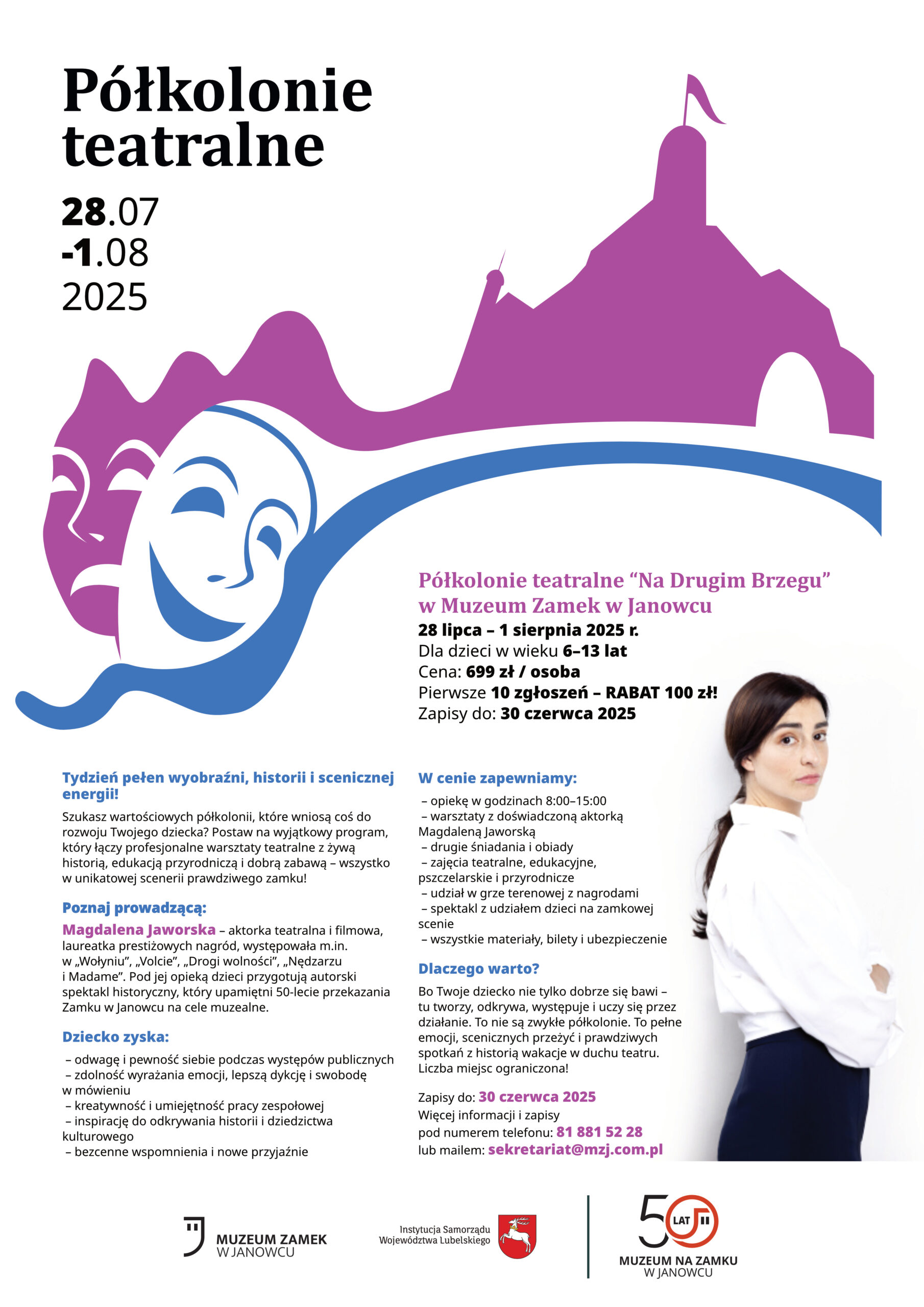 Szukasz wartościowych półkolonii, które wniosą coś do rozwoju Twojego dziecka? Postaw na wyjątkowy program, który łączy profesjonalne warsztaty teatralne z żywą historią, edukacją przyrodniczą i dobrą zabawą – wszystko w unikatowej scenerii Zamku w Janowcu!